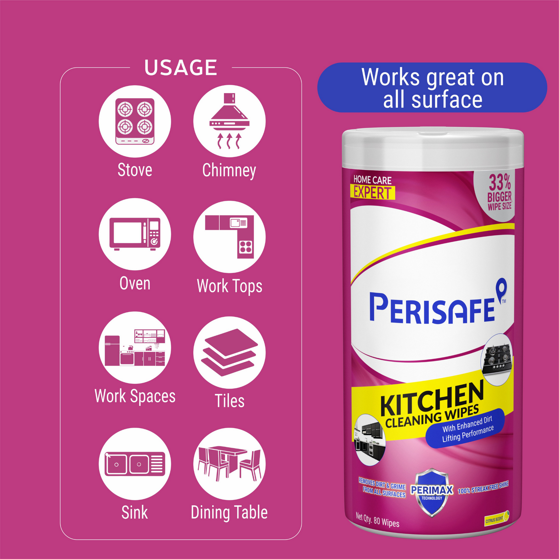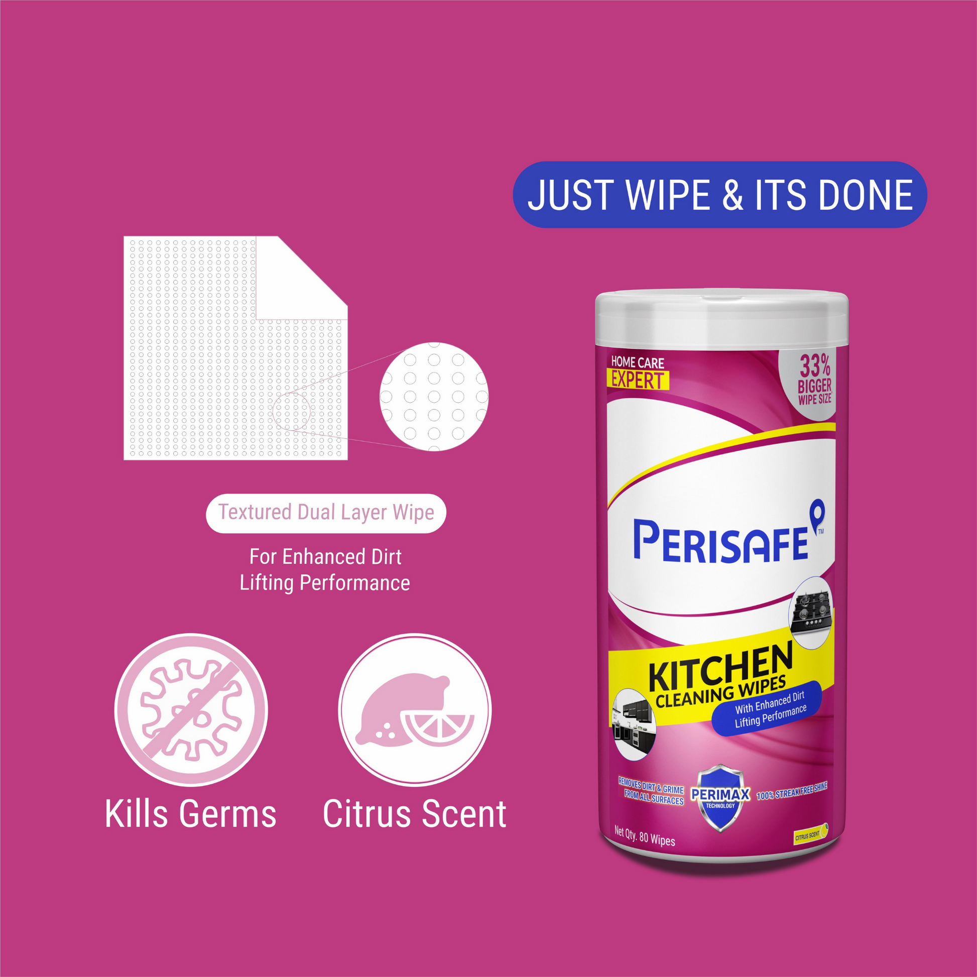 Perisafe Kitchen cleaner wet wipes- 80 pulls canister
